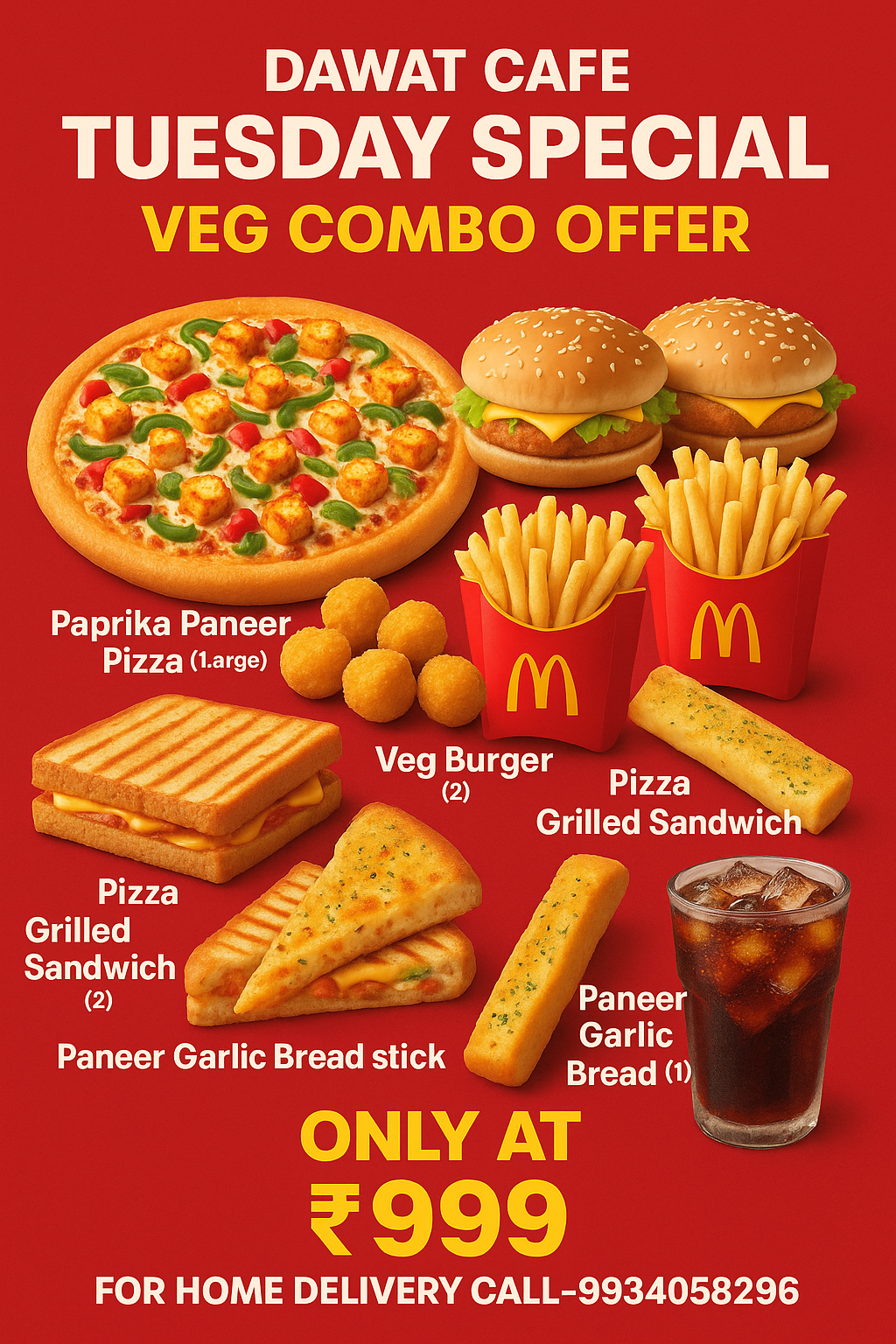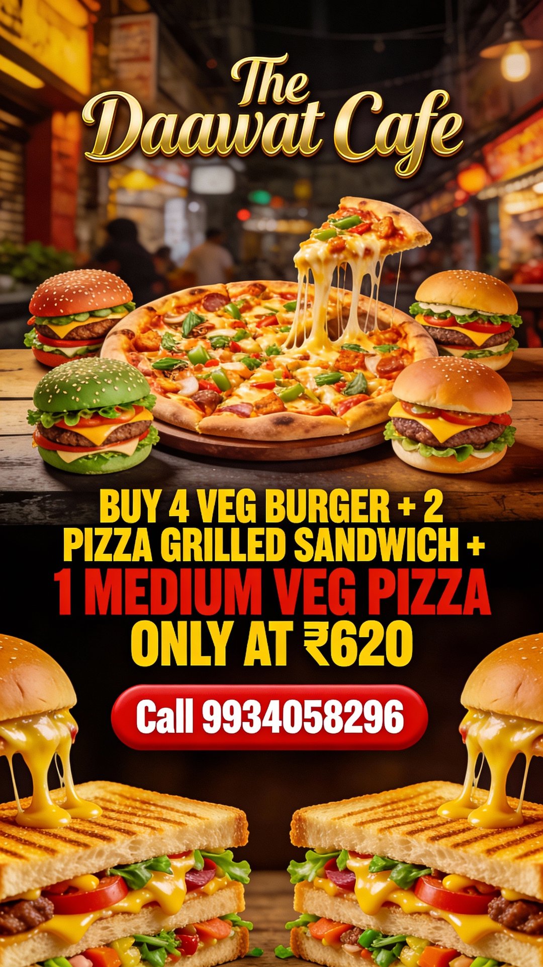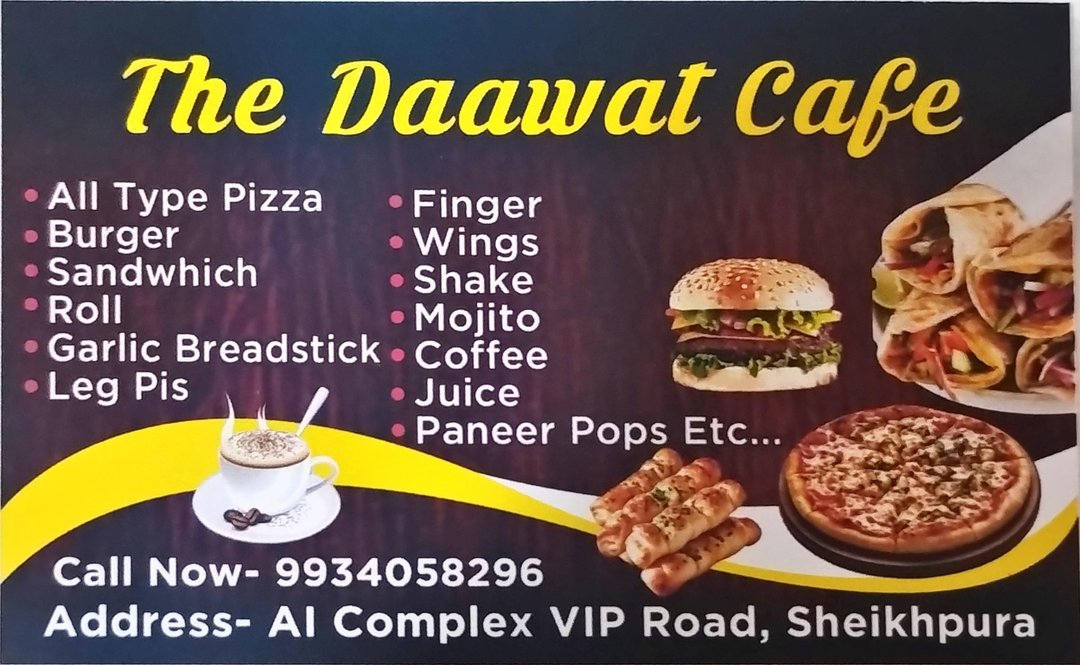 Experience the flavors of Sheikhpura at The Daawat Cafe, your go-to fast food destination! Savor our mouth-watering sandwiches, pizzas, Chinese delights, and juicy burgers, all made with love and care. Enjoy convenient pizza delivery or dine-in with us. Visit us today and indulge in a culinary journey that will leave you craving for more!